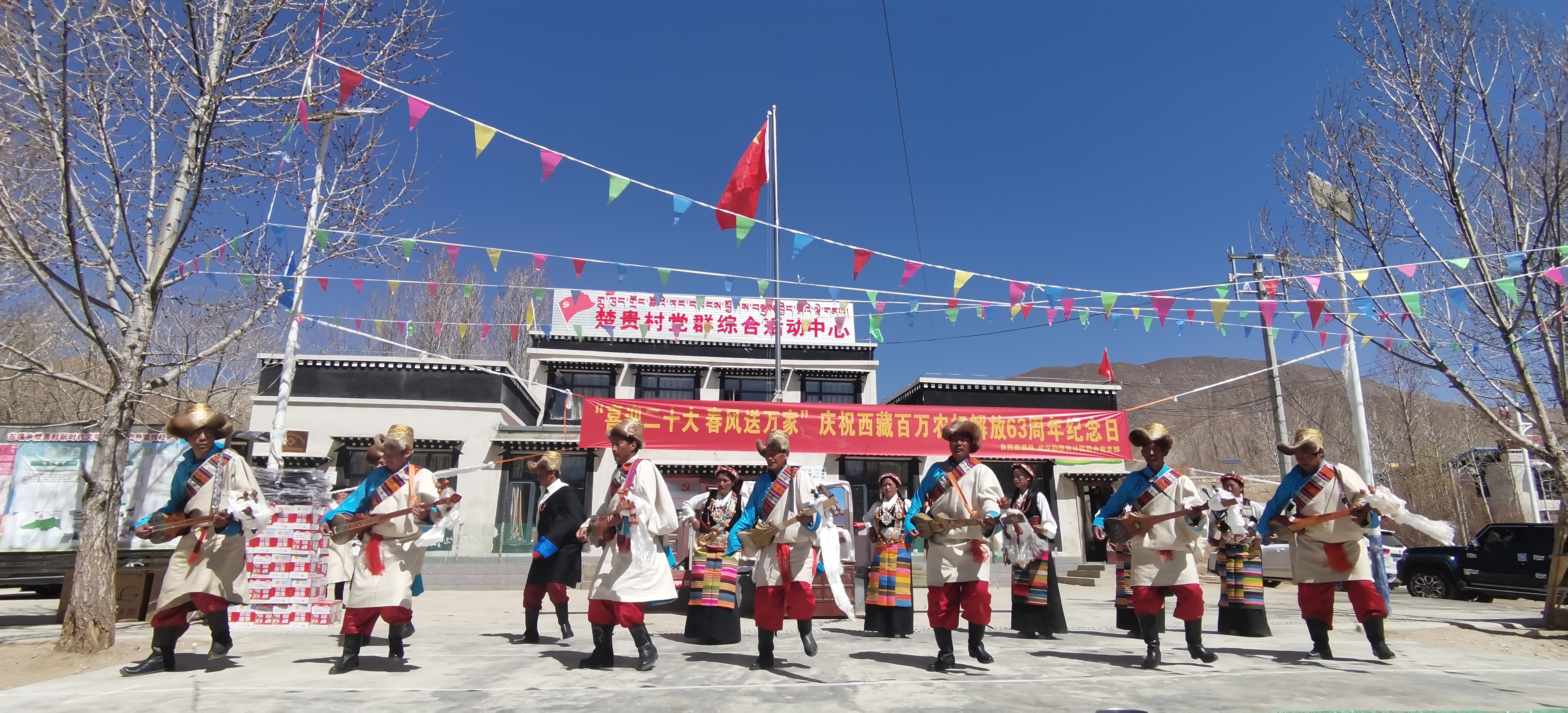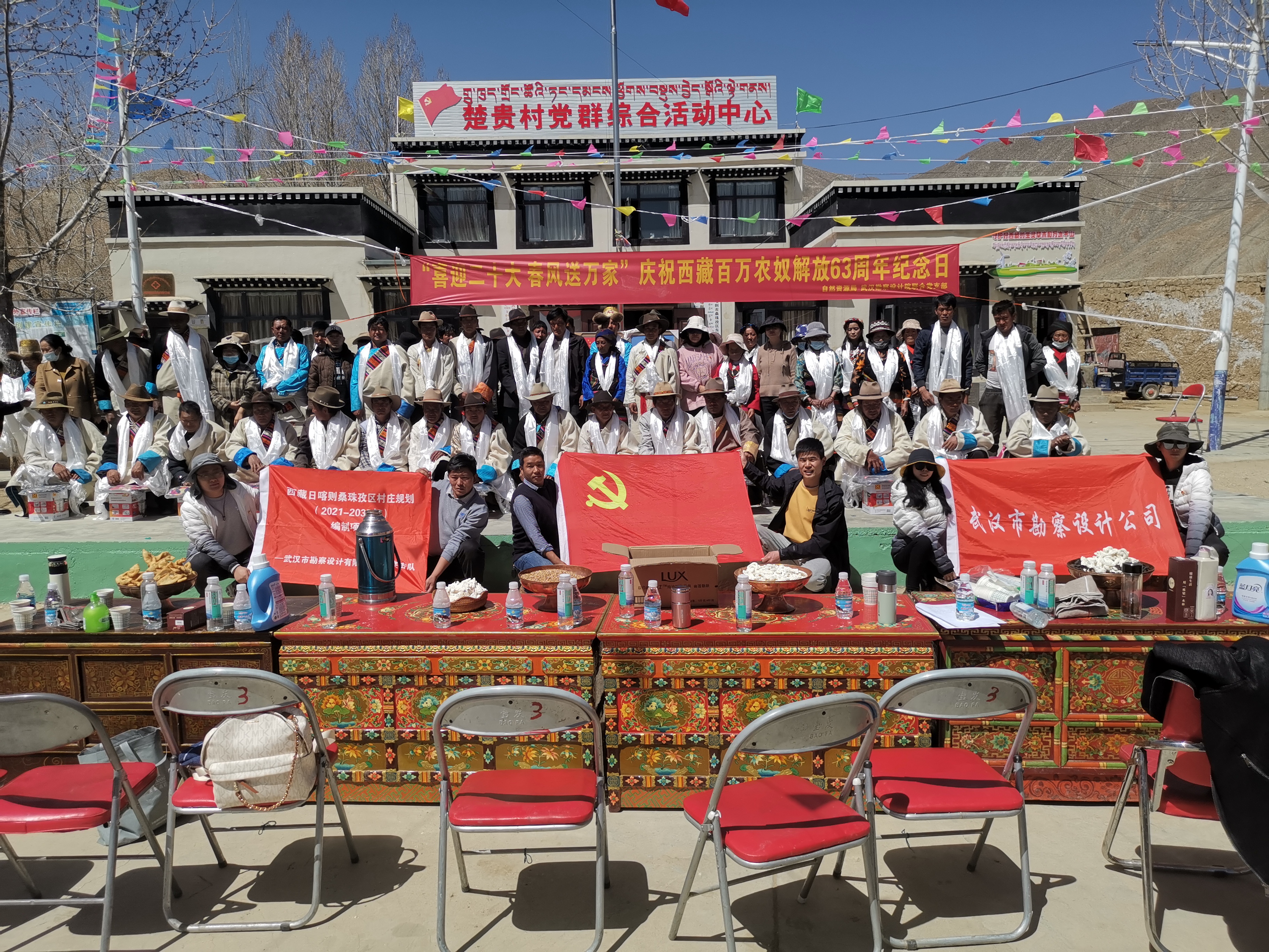 為慶祝西藏百萬農(nóng)奴解放63周年,充分展現(xiàn)西藏民主改革以來社會經(jīng)濟發(fā)展取得的突出成就,3月27日上午,項目黨員突擊隊參與了桑珠孜區(qū)自然資源局、東嘎鄉(xiāng)楚貴村黨支部及駐村工作隊聯(lián)合開展“建設美麗幸福西藏,共圓偉大復興夢想——紀念西藏百萬農(nóng)奴解放63周年”聯(lián)合主題黨日活動。